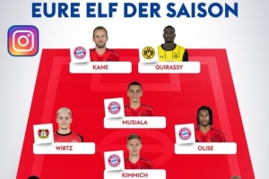 德天空评德甲赛季最佳阵:凯恩领衔拜仁6将入选,维尔茨在列